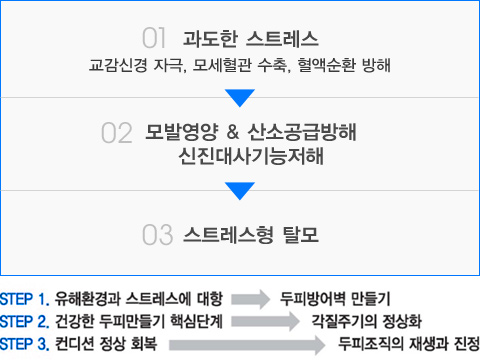 전문 아로마 두피 테라피를 통해 호르몬 발란스를 조절하는 [내적관리]와 + 디지털 기기를 통해 경직된 근육을 이완시키는 [외적관리]를 통해 스트레스성 두피의 발란스를 정상화하는 관리법