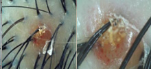 두피를 누르면 통증이 있으며 느낌이 둔탁하다.